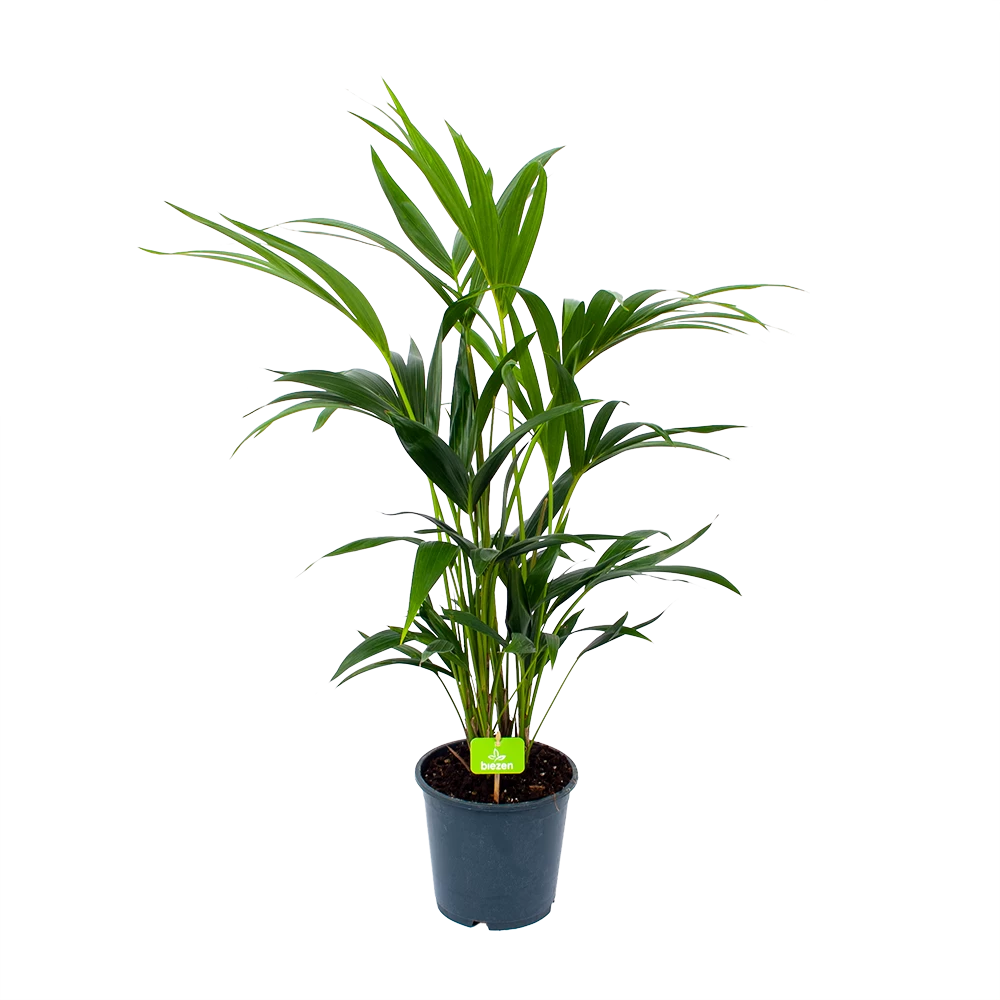 Creëer een tropische sfeer in huis met deze grote groene plant. De Kentiapalm of Howea Forsteriana is een verzameling van meerdere palmen en is zowel aantrekkelijk als nuttig, want zijn geveerde frisgroene bladeren zijn ook sterk luchtzuiverend. Plaats de plant op een lichte plek met indirect zonlicht op zo’n 3 meter van het raam. Geef de Kentiapalm regelmatig water en zorg dat de grond tussen de waterbeurten door licht vochtig blijft.